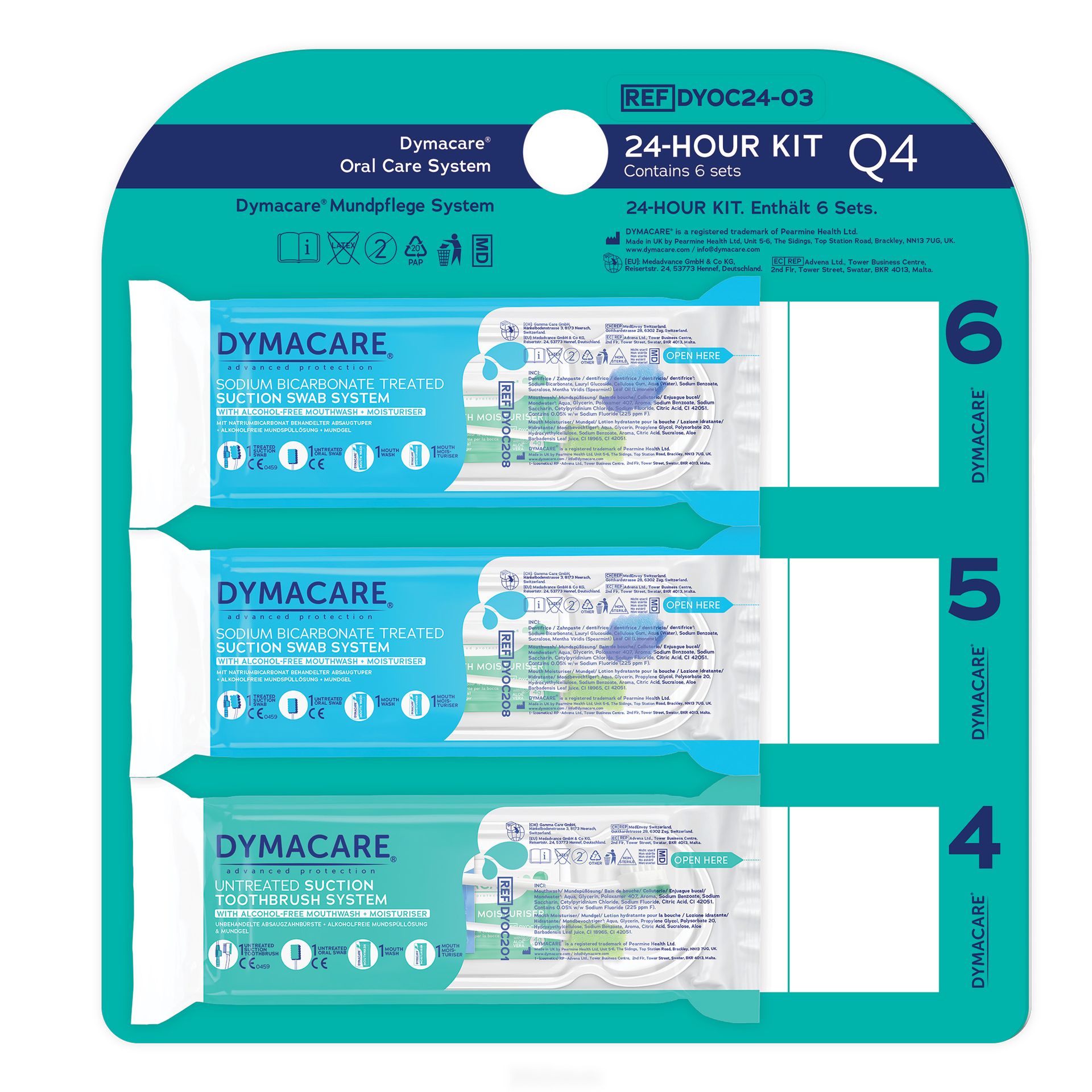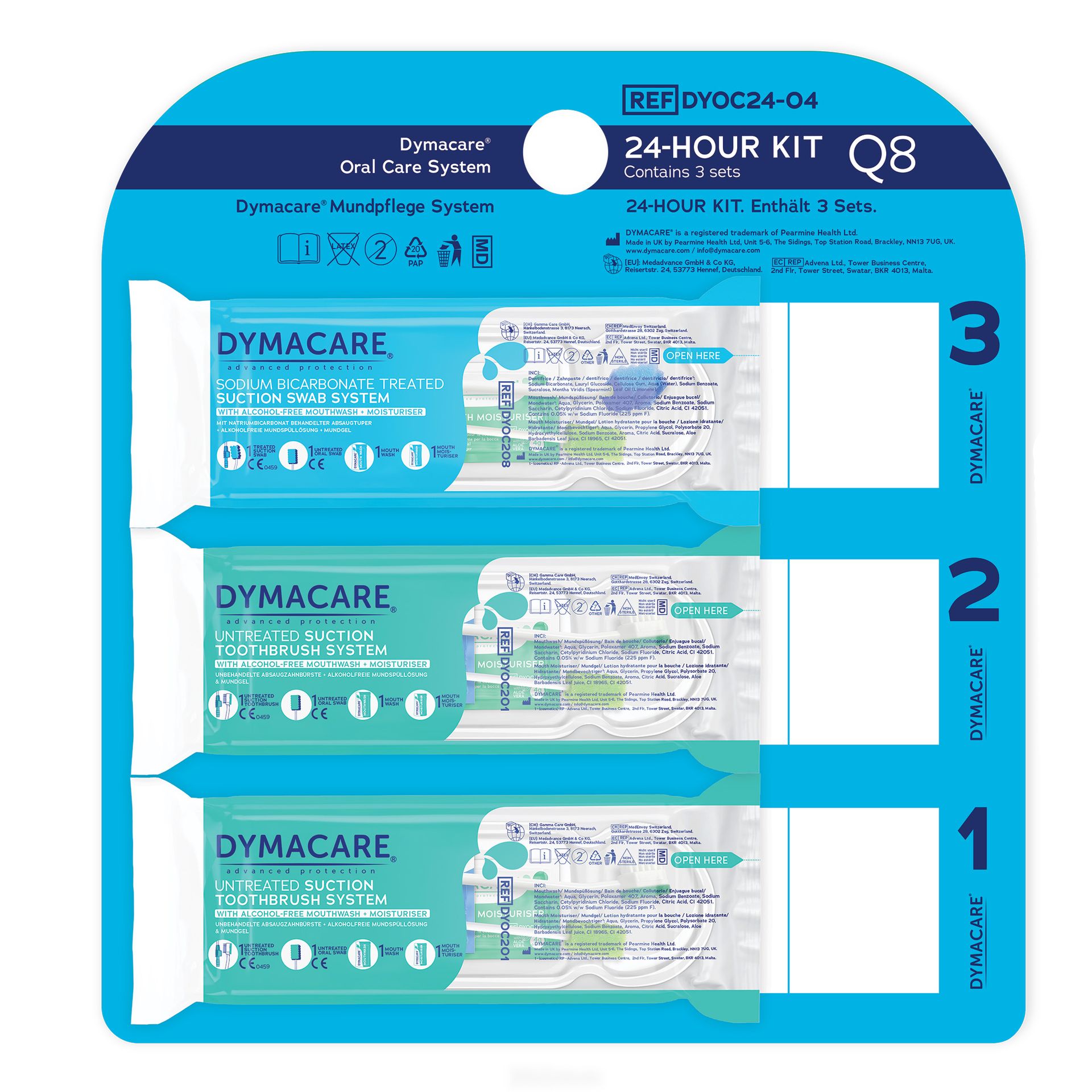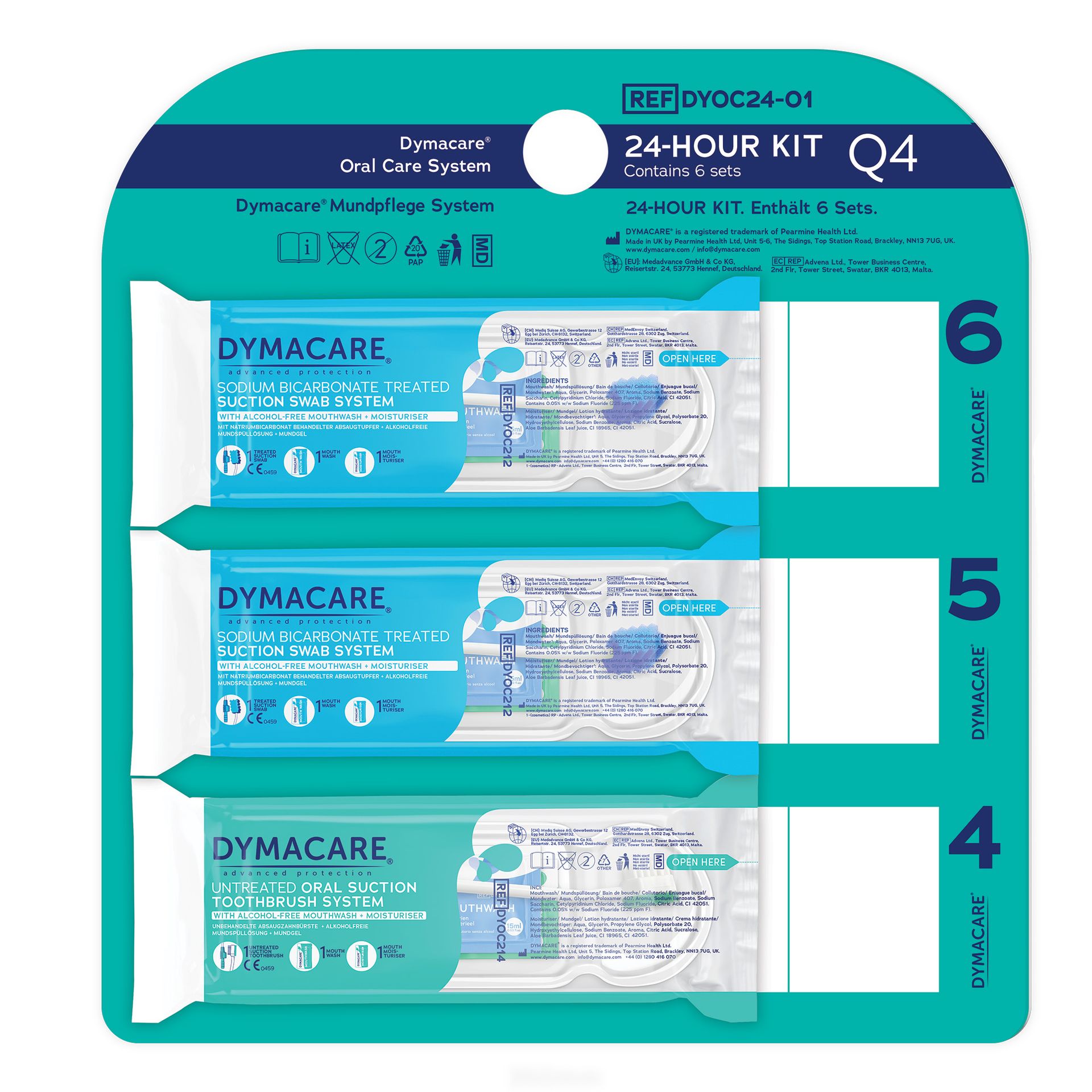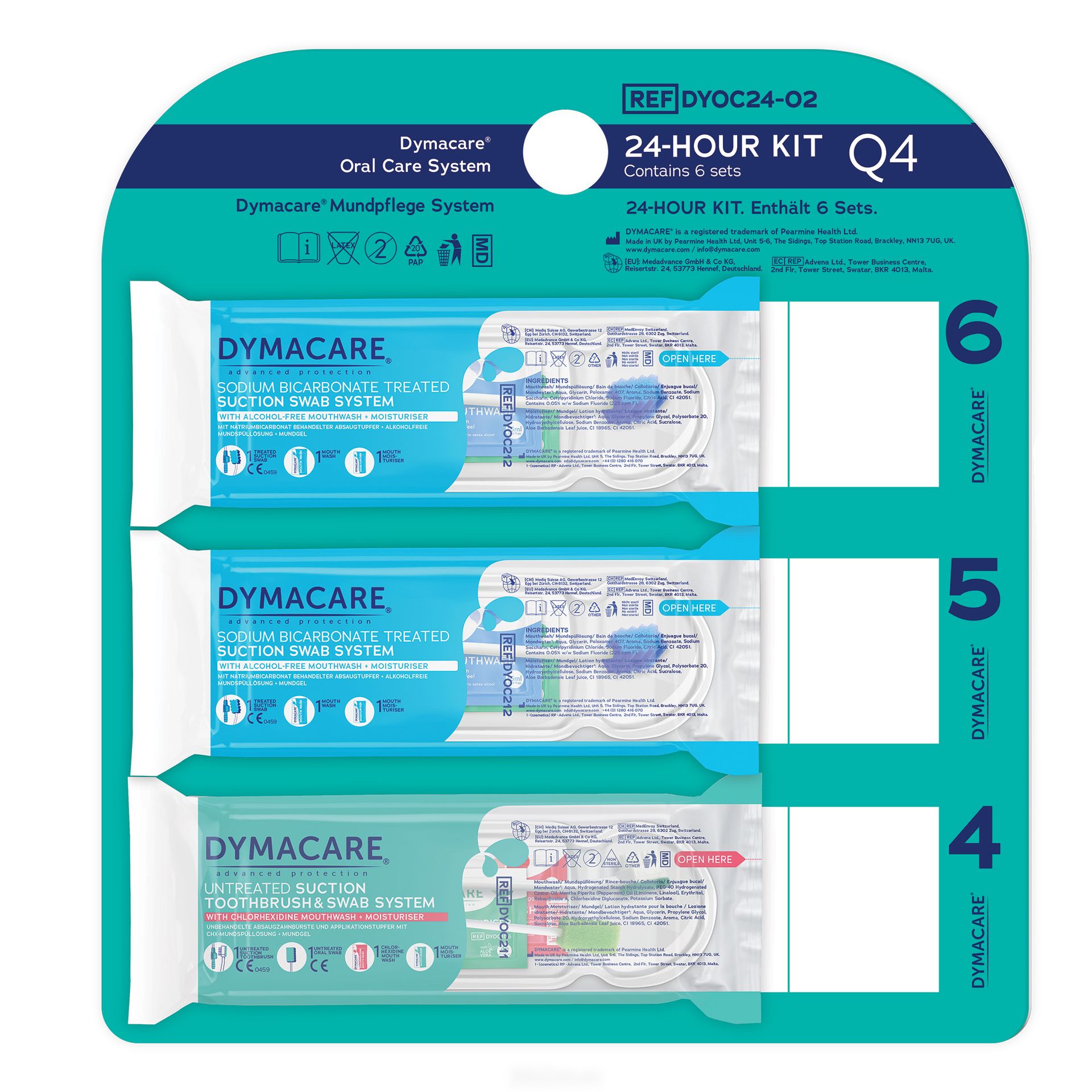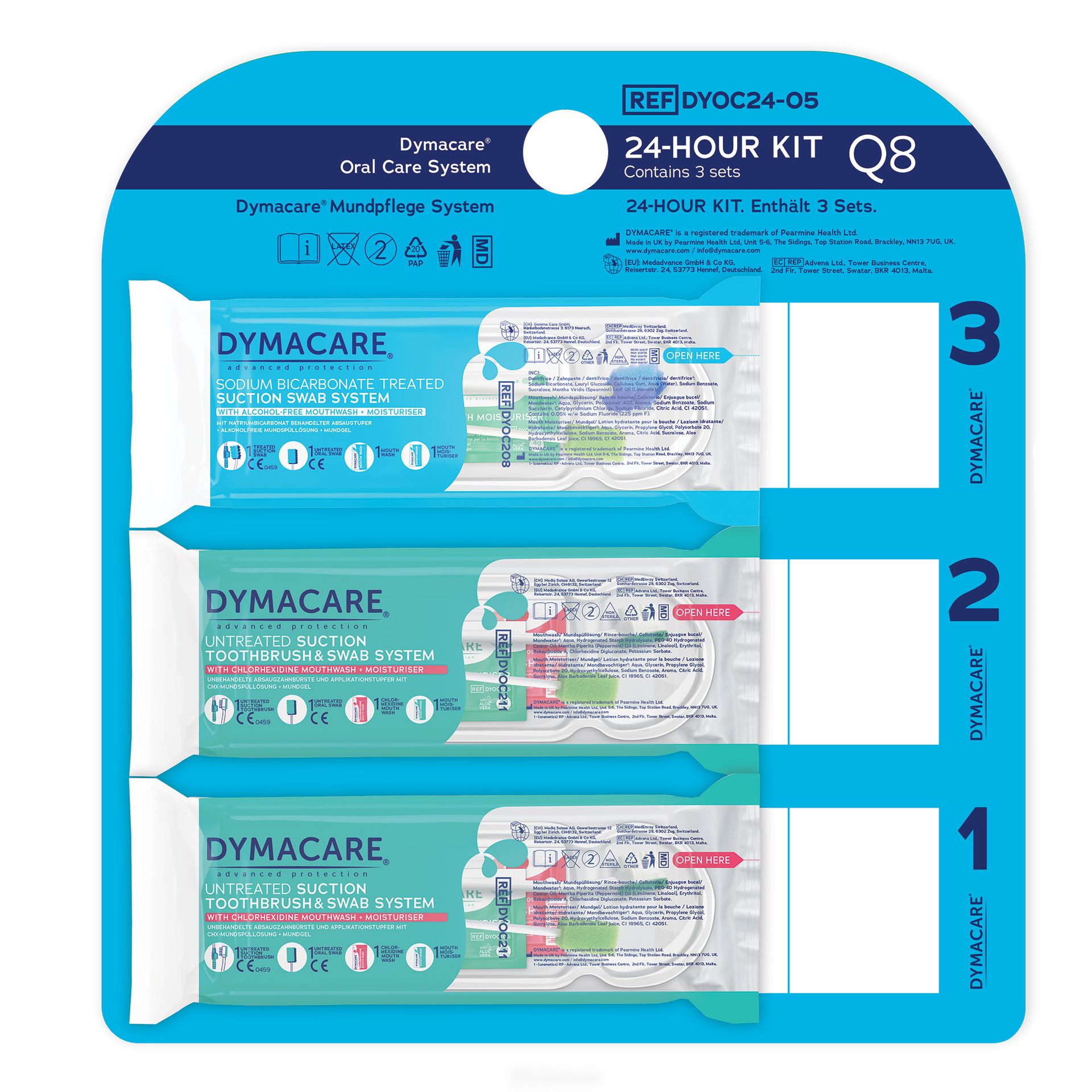 Individuelle DYMACRE Oral Care Sets enthalten alle Einzelartikel, die für eine Mundpflege benötigt werden.